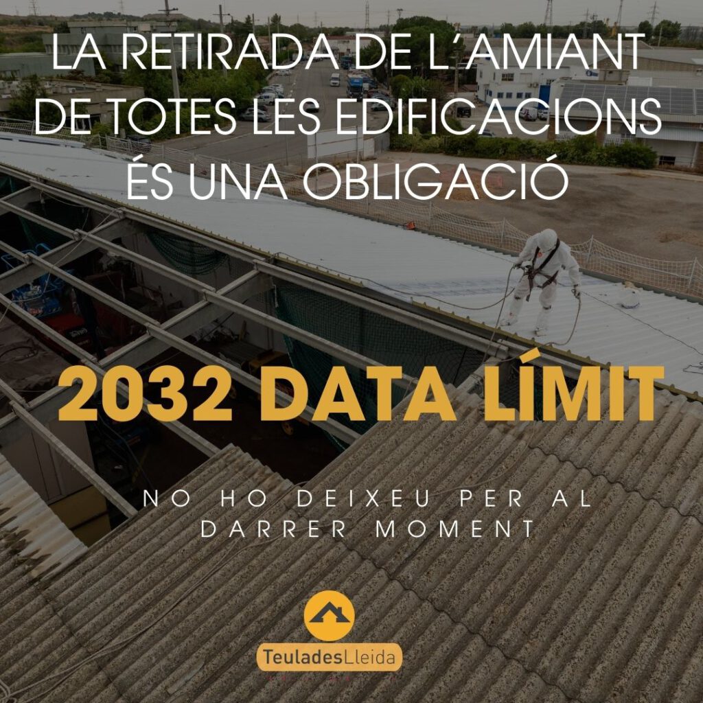 La normativa europea és clara: l’any 2032 és la data límit per a la retirada total de l’amiant de totes les edificacions, públiques (2028) i privades. No es tracta d’una recomanació, sinó d’una obligació legal que els propietaris hauran de complir.